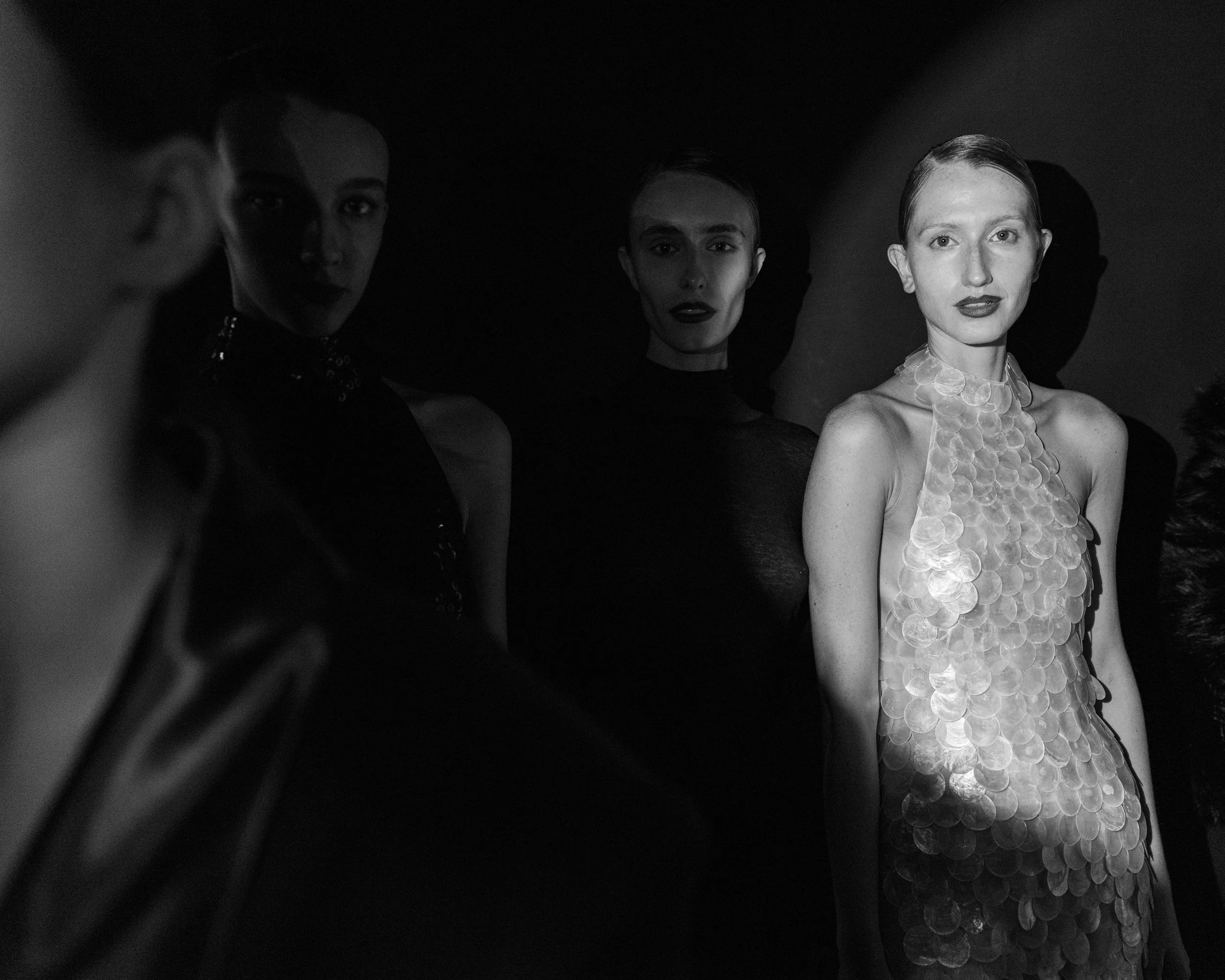 Valérie Jurčíková is a young and distinctive fashion designer, a graduate of the Fashion and Footwear Design Studio at UMPRUM in Prague, where she studied under the guidance of the renowned professor Liběna Rochová. Her work is deeply rooted in a conceptual approach to clothing, and she extensively experiments not only with textiles but also with less traditional or unexpected materials. These artistic and material experiments allow her to explore new forms, structures, and meanings, while also granting her creative freedom.